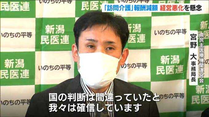 【新潟県 民主医療機関連合会 宮野大 事務局長】「国の判断は間違っていたと我々は確信しています。訪問介護の介護報酬引き下げについては次期改定を待たずに即時撤回が必要だと強く感じています」