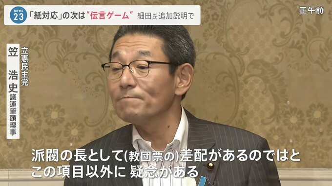 「派閥の長として(教団票の)差配があるのではと、この項目以外にも色んな疑念がある。記者会見なり質問に答える形で、自らの言葉で説明した方がいいのではないか」