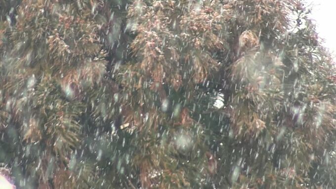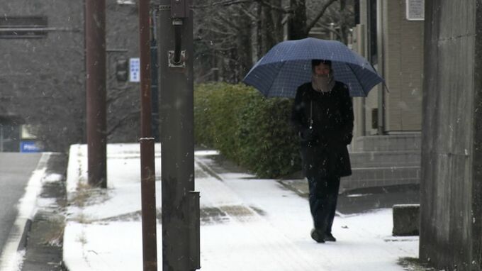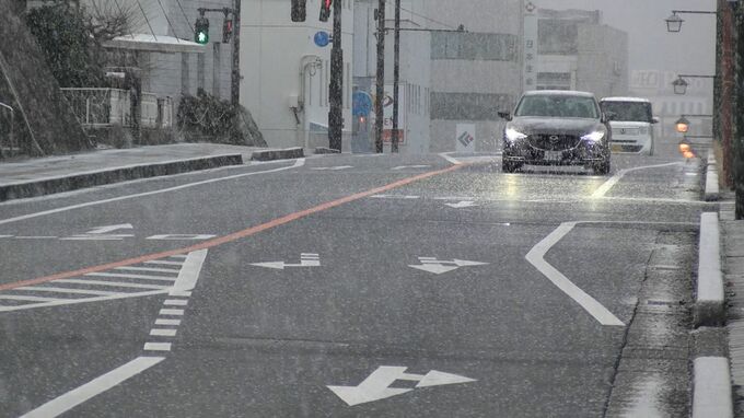 強い寒気の影響で岡山県北は広い範囲で雪の降る朝となりました。午前7時ごろの津山市山下です。