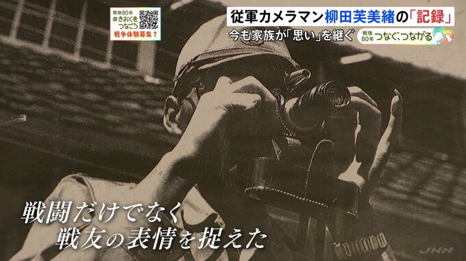 従軍カメラマンの柳田芙美緒氏は、部隊の「戦闘の合間」の様子をありありと記録しました。戦後に生まれた娘が、静岡県の自宅で残された写真に囲まれて暮らしています。飯盒を手に笑顔で食事をする兵士たち。戦場で…