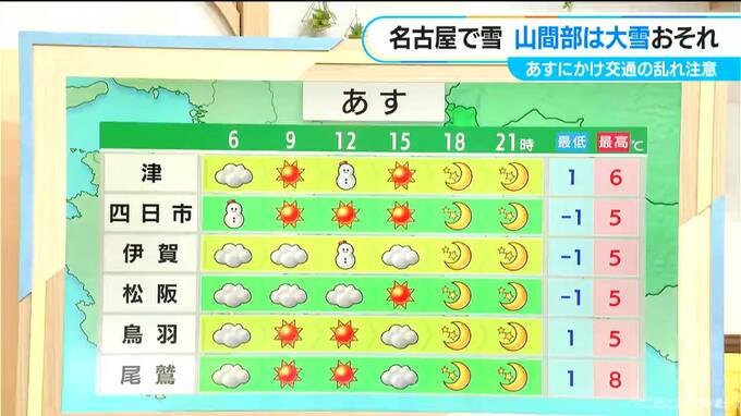 あす19日(水)にかけて岐阜・三重で大雪か 愛知も積雪の可能性 “強烈寒波”が3連休明けまで日本の上空に いつどこで雪が降る?最新の雪シミュレーション 気象庁発表 CBCテレビ 2025年2月18日(火) 19:26 国内
