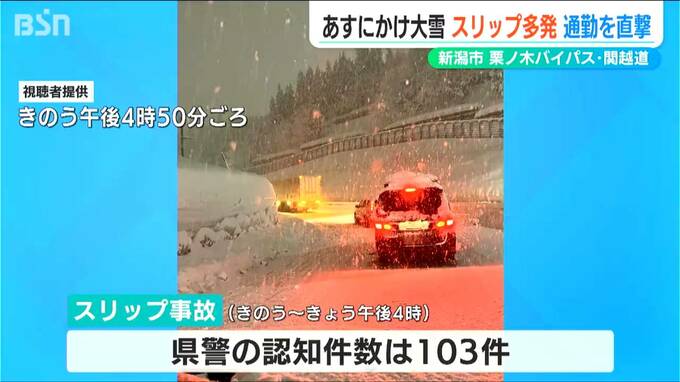10日ぶりの大寒波、新潟市では18日、スリップ事故が相次ぎトレーラーの事故で幹線道路が通行止めとなり、市民の通勤を直撃しました。19日にかけて雪による交通障害に注意・警戒が必要です。