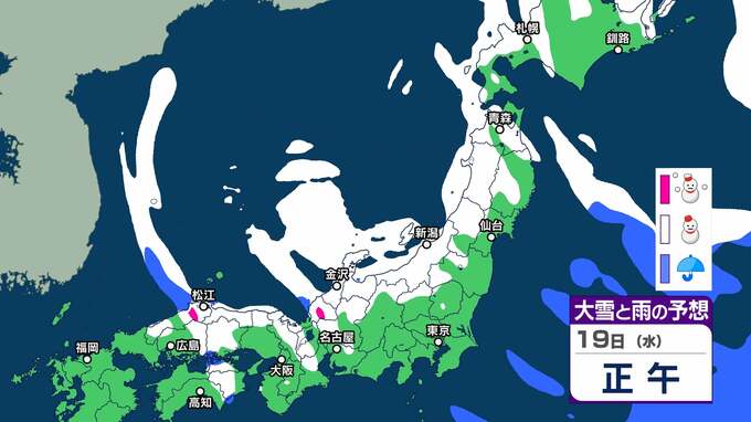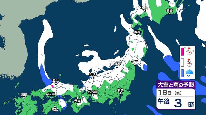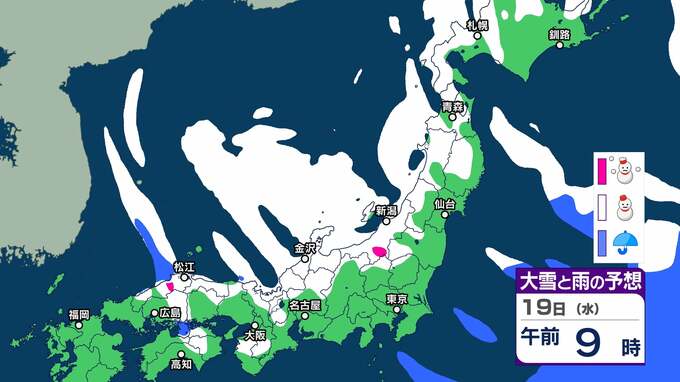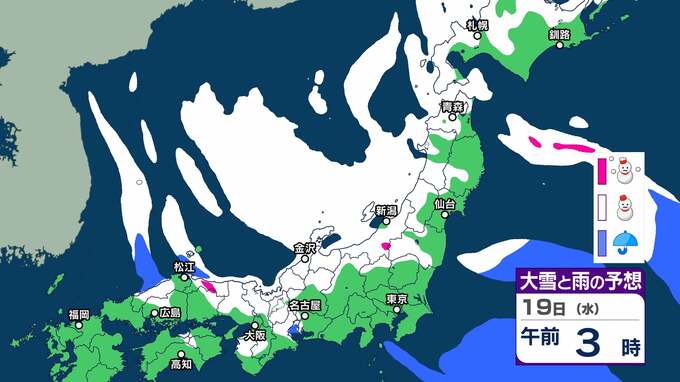 【強烈寒波】19日は広く “警報級大雪” のおそれ…交通などの影響に注意 24日頃まで大雪・寒さ続く【雪と雨のシミュレーション】 チューリップテレビ 2025年2月18日(火) 20:17 国内 天気 19日(水)雪と雨のシミュレーション
