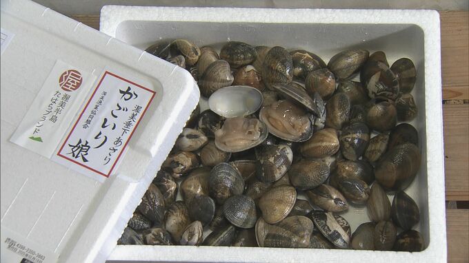 ブランドあさりの「かごいり娘」は1キロ4320円で、4月ごろまで販売予定です。