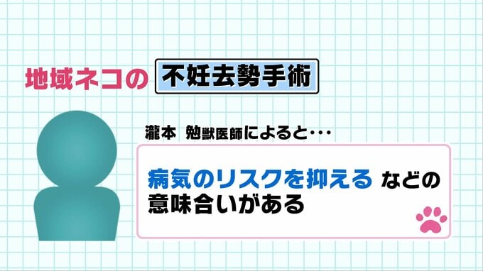 不妊去勢手術に関しては一見かわいそうにも見えますが、獣医師の瀧本勉さんによりますと、たび重なる妊娠による病気のリスクを抑えるなどの意味合いもあります。