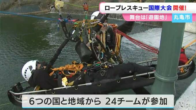 香川県で初めて開かれた、ロープを使った救助技術を競う大会です。