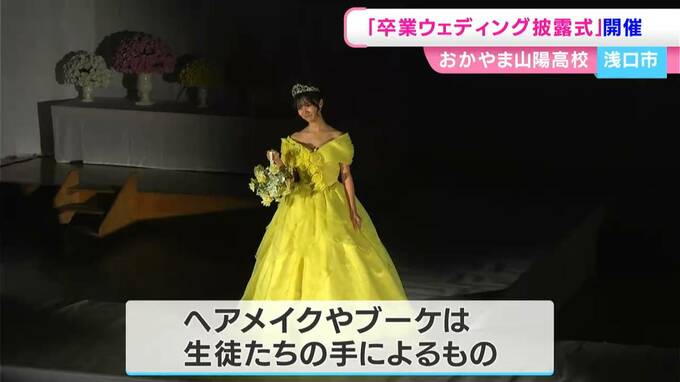 岡山県浅口市にあるおかやま山陽高校で卒業ウェディング披露式が行われました。ブライダルや美容などを学んだ生徒たちがヘアメイクからモデルまでこなす恒例行事です。