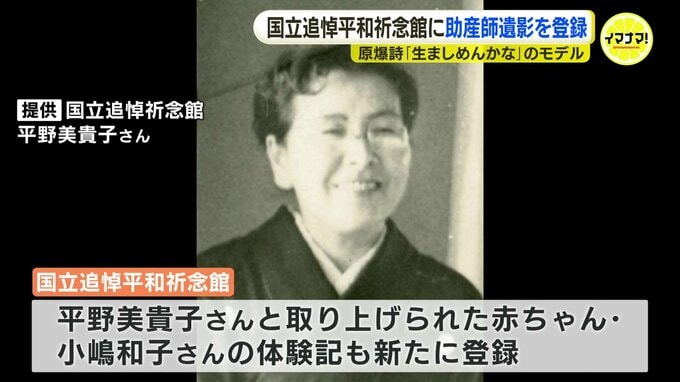 原爆詩「生ましめんかな」のモデルとなった助産師・ウメヨさんの遺影が、2月、新たに、広島市の国立追悼平和祈念館に登録されました。
