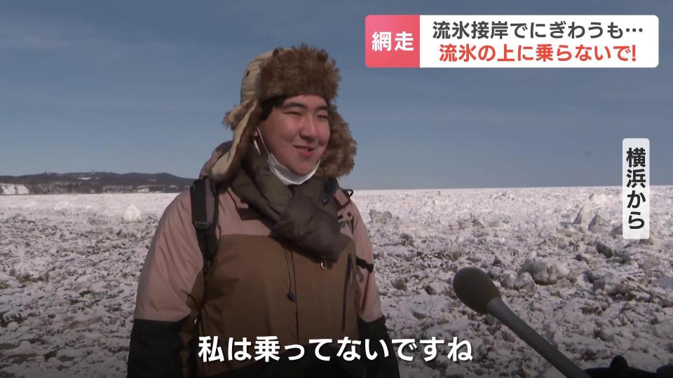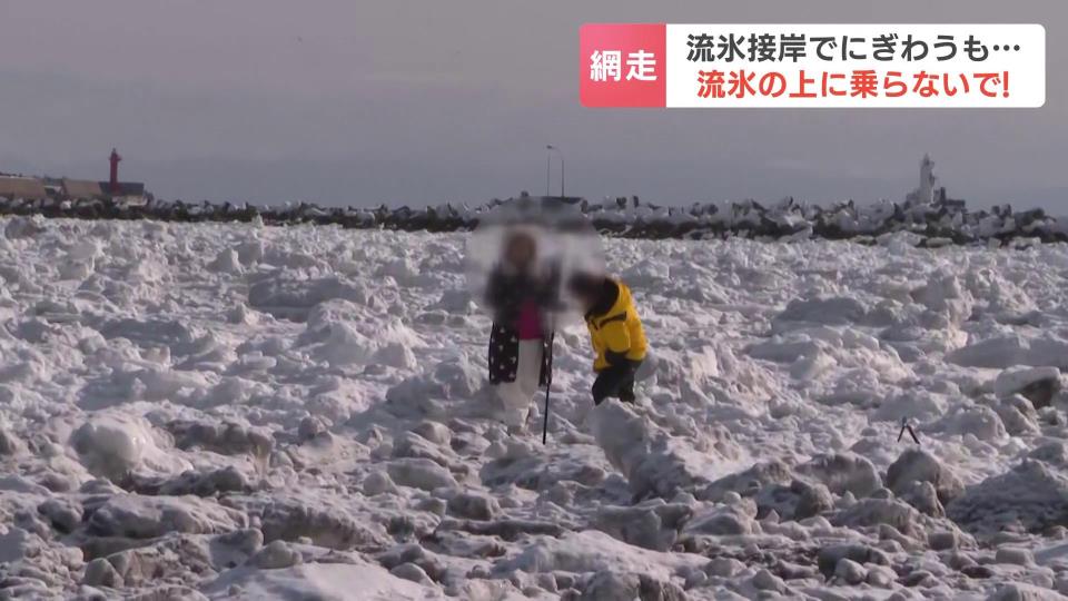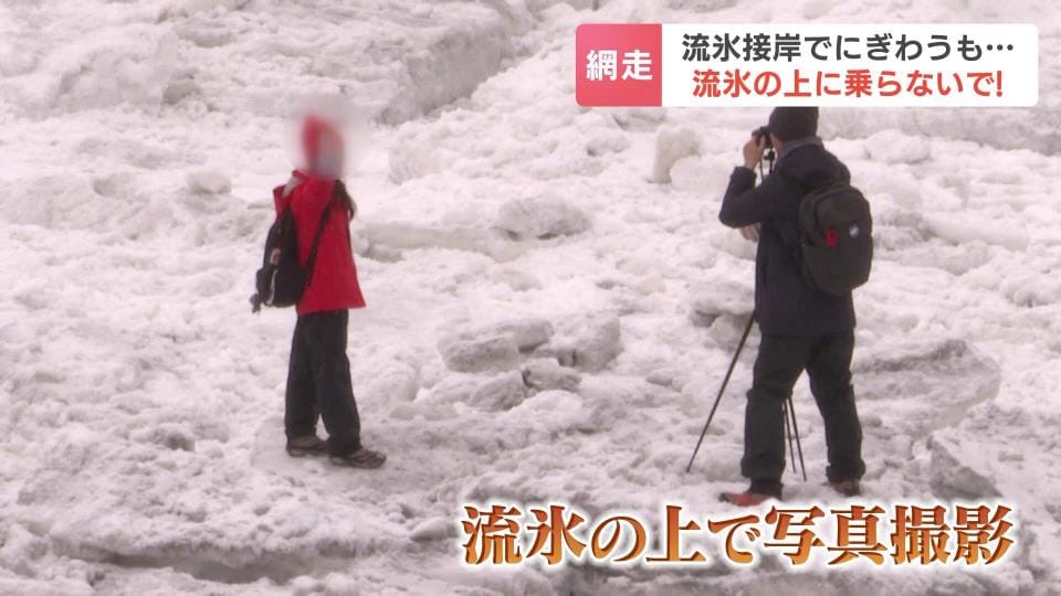網走市の職員が海岸を回って、流氷に乗らないよう、観光客に声をかけています。網走市では5年前に、流氷に乗った大学生が沖に流される事故も起きています。