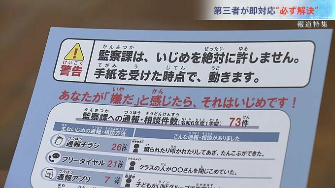 「監察課は、いじめを絶対に許しません。手紙を受けた時点で、動きます」。これは「いじめ通報促進チラシ」と呼ばれている。