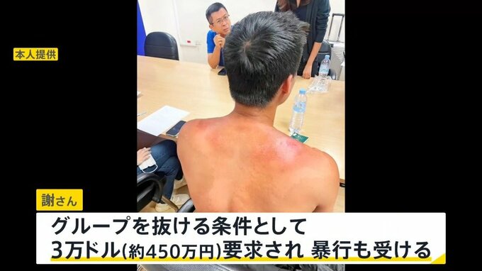 詐欺の実行役を命じられた謝さんは、グループを抜ける条件として3万ドル(日本円で約450万円)を要求され、暴行も受けたといいます。