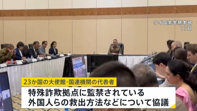こうした問題を受け、タイ国家警察本部では2月17日、日本を含む23か国の大使館や国連機関の代表者が集まり、特殊詐欺の拠点に監禁されている外国人らの救出方法などについて協議しました。