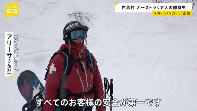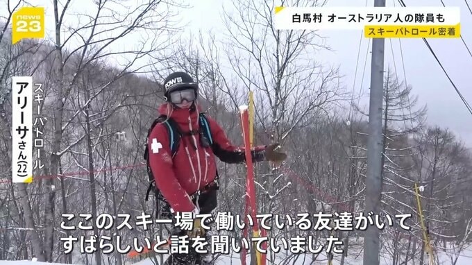 パトロール中、この日は閉鎖されているコースを滑る外国人観光客を見つけたアリーサさんは「いま、このレーンはいま閉鎖されていますよ」と呼びかけていました。