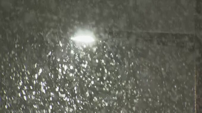 「粒の大きな雪がしんしんと降り続いていて、道路上に積もり始めています」