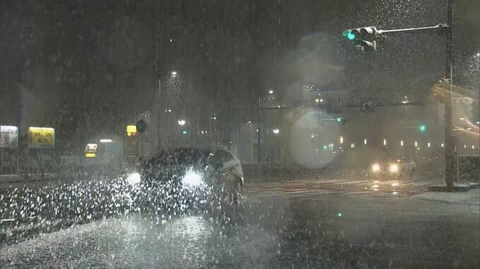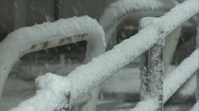 「粒の大きな雪がしんしんと降り続いていて、道路上に積もり始めています」