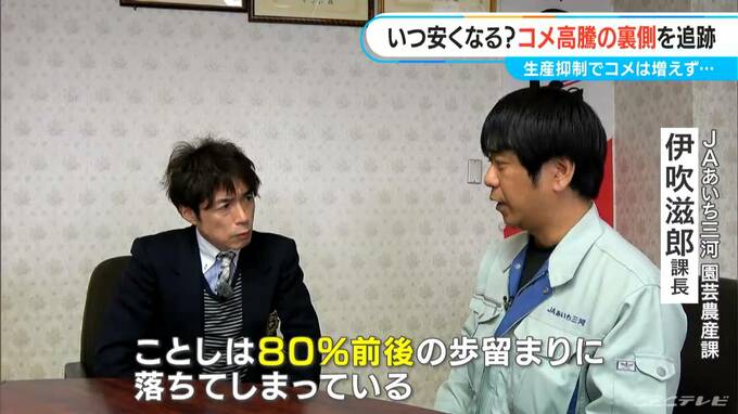 「(去年)猛暑だったので夏場の暑さに耐えたコメに"割れ"などが多く、玄米を白米にしたときの"歩留まり"が、例年だと約87%だったのが、ことしは80%前後の歩留まりに落ちてしまっている」