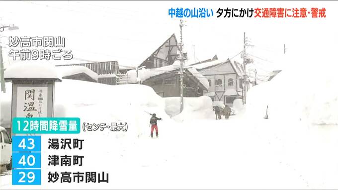 新潟地方気象台は中越の山沿いでは19日の夕方まで大雪による交通障害に注意・警戒するよう呼び掛けています。