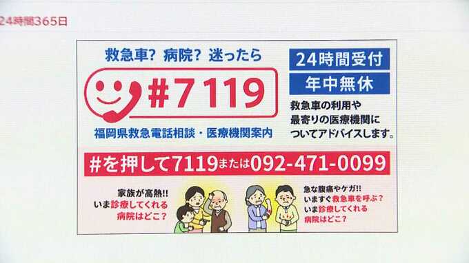 「#7119のような救急車を呼ぼうかなと迷うぐらい待てる場合ですね、そういったところにお電話をいただき、まず相談をするともう一つですね、市町村のホームページには今日の当番病院であったりが掲示してあることがありますので、そちらの方に問い合わせをしてですね、ご自身で受診していただけると救急要請件数を少し減らせるのではないかと思います」