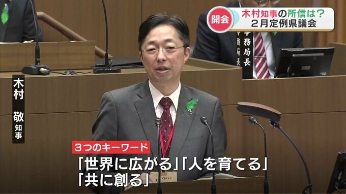 2月定例県議会が2月19日開会しました。就任後初めての来年度当初予算編成となった木村知事。その所信は?熊本県 木村敬知事「県民みんなが安心して笑顔になり、持続的で活力あふれる熊本の未来を共に創る」「(キ…