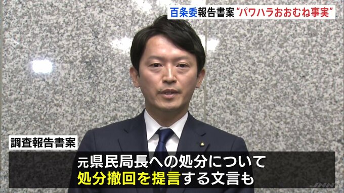兵庫県の斎藤知事の告発文書問題を調査する百条委員会の調査報告書案に、県職員へのパワハラ疑惑について「おおむね事実」などと記載されていることが分かりました。兵庫県の斎藤知事がパワハラなどの疑惑で元県民…