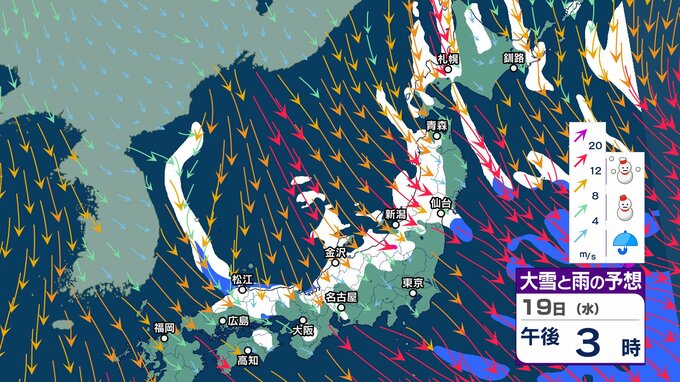 富山県内は断続的に雪 山間部で警報級の大雪のおそれ あす朝までに最大70センチ、平野部では30センチ…交通機関への影響に注意【雪と雨のシミュレーション】 チューリップテレビ 2025年2月19日(水) 13:06 国内 天気 19日(水)雪と雨のシミュレーション