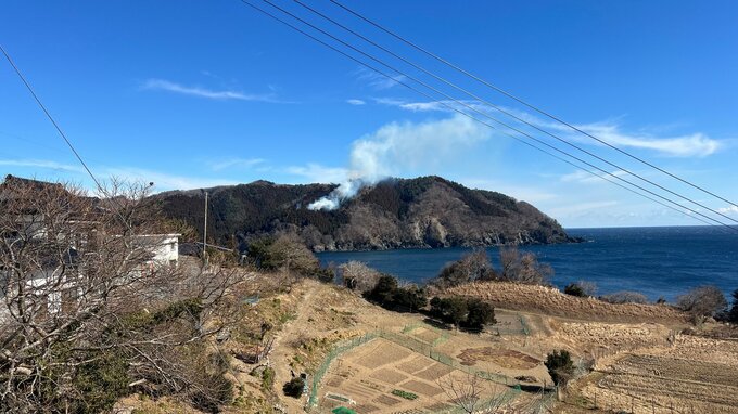消防によりますと、19日午前11時55分ごろ、「対岸から白煙が見える」と通行人から消防に通報がありました。現場は大船渡市三陸町綾里の田浜漁港の北東部に位置する山林で、消防が消火活動に当たっています。午後1時時点で、けが人の情報はありません。