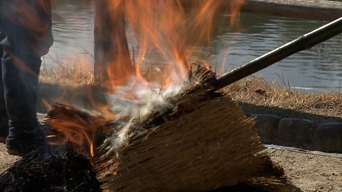 厳しい寒さの中、春を迎える準備です。岡山市北区の後楽園で、この時期、恒例の「松の菰(こも)焼き」が行われました。「松の菰焼き」は寒い時期に、枝先から降りてくる害虫を菰の中に誘い込み、暖かくなる前に菰…