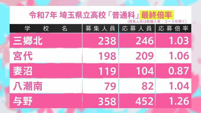 埼玉県立高校入試2025 全日制普通科 最終志願倍率は大宮が1.51倍、川越南1.48倍、浦和1.47倍、川越1.47倍に【令和7年度高校受験】 TBSテレビ 2025年2月20日(木) 11:45 国内 学校別の一覧 与野1.26倍、本庄1.15倍