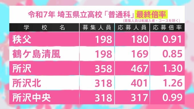 埼玉県立高校入試2025 全日制普通科 最終志願倍率は大宮が1.51倍、川越南1.48倍、浦和1.47倍、川越1.47倍に【令和7年度高校受験】 TBSテレビ 2025年2月20日(木) 11:45 国内 学校別の一覧 南稜1.33倍、所沢1.30倍