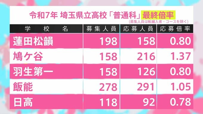 埼玉県立高校入試2025 全日制普通科 最終志願倍率は大宮が1.51倍、川越南1.48倍、浦和1.47倍、川越1.47倍に【令和7年度高校受験】 TBSテレビ 2025年2月20日(木) 11:45 国内 学校別の一覧 鳩ケ谷1.37倍、不動岡1.35倍