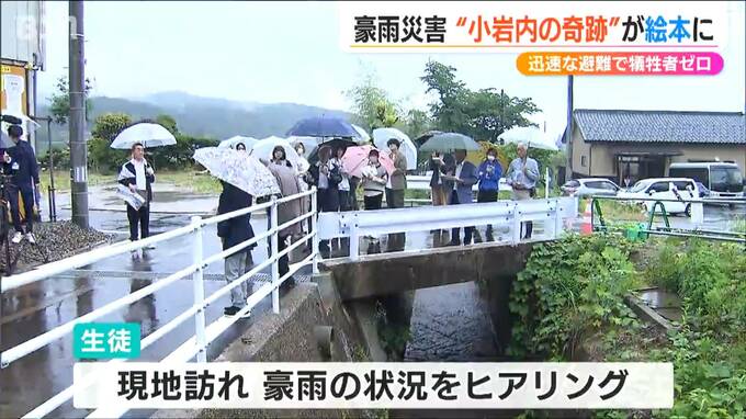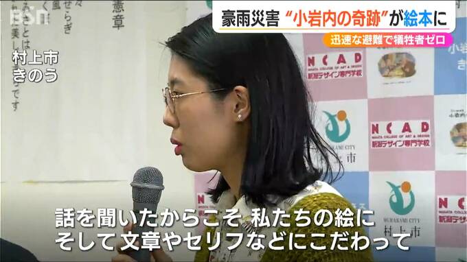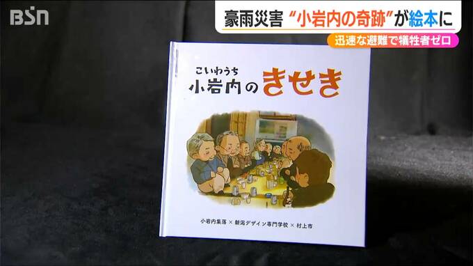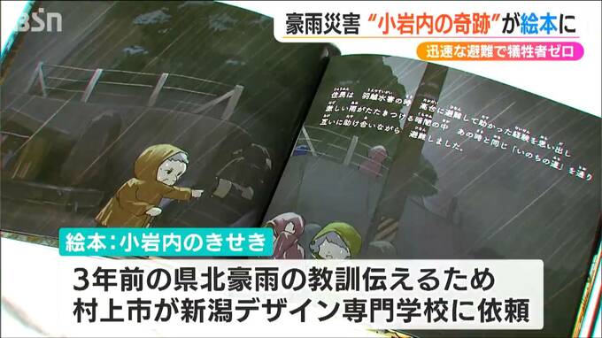 3年前に起きた県北豪雨の教訓を後世に残すため、村上市が新潟デザイン専門学校(新潟市)に依頼して作成した絵本です。