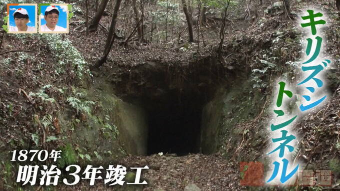 その廃道に眠る隧道が、明治3年竣工(1870年)の「キリズシトンネル」。山を部分的に切り開いて造った道「切り通し」がなまって、「キリズシ」になったのが名前の由来とされています。現代には珍しい矩形(くけい)の形状をしており、今も通り抜けることができます。