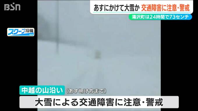新潟地方気象台は中越の山沿いでは20日明け方まで大雪による交通障害に注意・警戒するよう呼び掛けています。