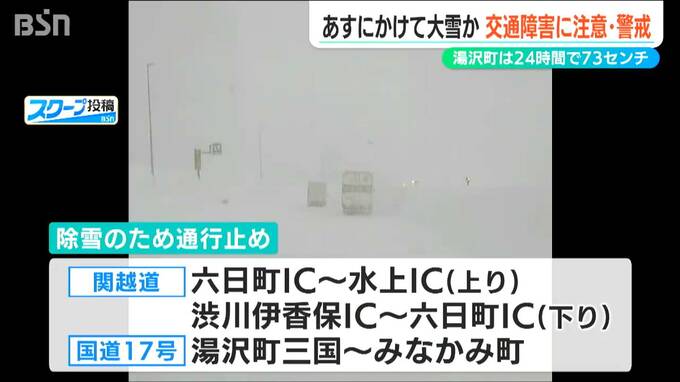 こちらは19日午後の関越道の様子です。午後5時半現在、関越道と国道17号の一部区間で集中除雪のため通行止めとなっています。