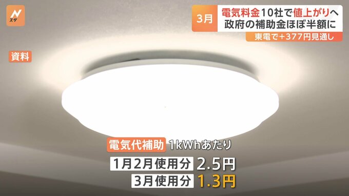 来月の電気代は補助金の縮小によって、大手電力10社全てで値上がりする見通しです。政府は暖房などの使用量が増える1月から3月までに限って、電気とガス代の負担を軽減するための補助金を再開しています。電気代で…