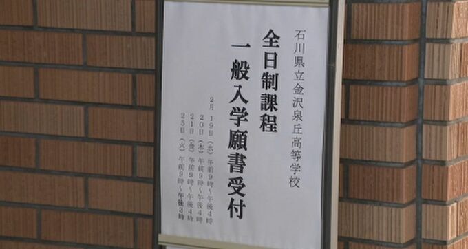 願書の受け付けが始まったのは県内40の全日制公立高校でこのうち、金沢市の金沢泉丘高校では受付開始の午前9時過ぎから中学校の教員が願書の提出に訪れていました。