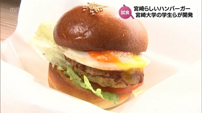 宮崎ブランドポークや日向夏ソースなど、宮崎らしさを詰め込んだハンバーガーが間もなく完成します。19日は開発に携わった大学生たちが参加して試食会がありました。高く積み上げられたバンズからはみ出る大きなパ…