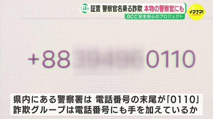 県内にあるすべての警察署は、電話番号の末尾が「0110」です。詐欺グループは、相手を信じ込ませるために、電話番号にも手を加えているとみられています。