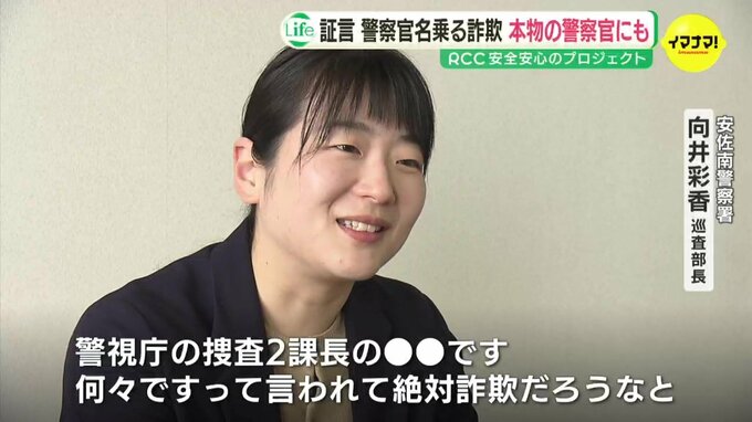 安佐南警察署に勤務する向井彩香巡査部長です。電話の相手は、やはり警視庁捜査2課を名乗っていました。向井巡査部長は、相手が警察を名乗ったことに、すぐに詐欺を疑ったといいます。しかし、ある理由から「本当の警察官の可能性もある」と感じたそうです。