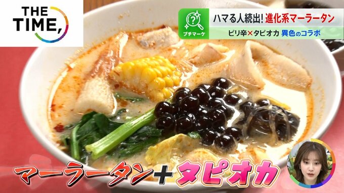 豚骨ベースのピリ辛スープにタピオカの弾力と滑らかな食感がクセになる、麻辣湯の概念を覆す一品です。