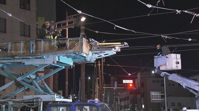 これより車両は故障で動けなくなり豊鉄市内線は全区間で19日の運転を取りやめ、翌20日の運転再開を目指し架線の修復などを行っています。架線が切れた原因は分かっていないということです。
