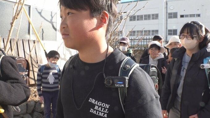 19日は笛吹市の御坂西小学校の下校時に、児童3人の頭やランドセルに小型カメラを装着してもらい、学校から自宅までの通学路を撮影しました。