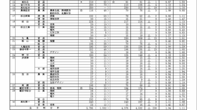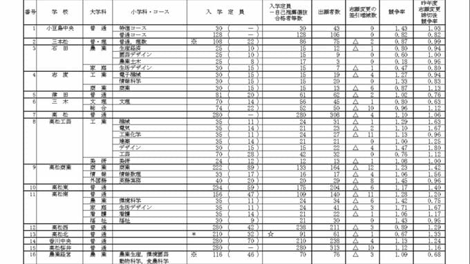 香川県の公立高校の一般選抜・志願変更受付 第1次の志願者数が発表されました。全高校の倍率は、【画像①~③】に掲載しています。