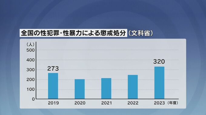 深刻な社会問題となっている教職員の性加害。文科省によりますと、2023年度に児童や生徒など18歳未満への性犯罪で懲戒処分を受けた教職員の数は全国で320人、過去5年間で最多となっています。