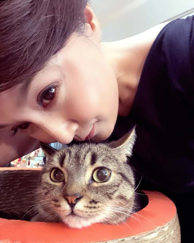 藤原さんは「ねえねえ、みんな聞いて」と、 ”まーのすけ” の心の声を台詞のように投稿。「僕がね、お気に入りの場所にいたらね、」「すぐチューしてくるんだよ。」と、藤原さんがバスケットにこもる ”まーのすけ” に唇を寄せている写真を投稿。