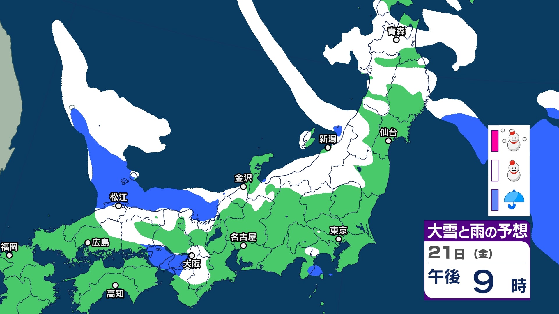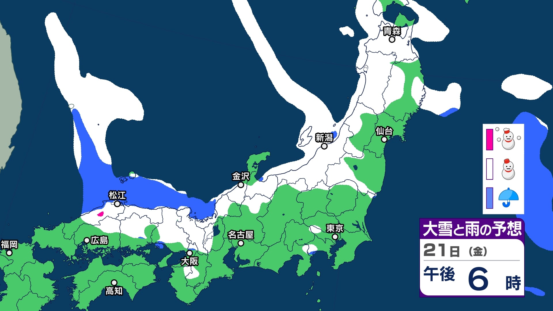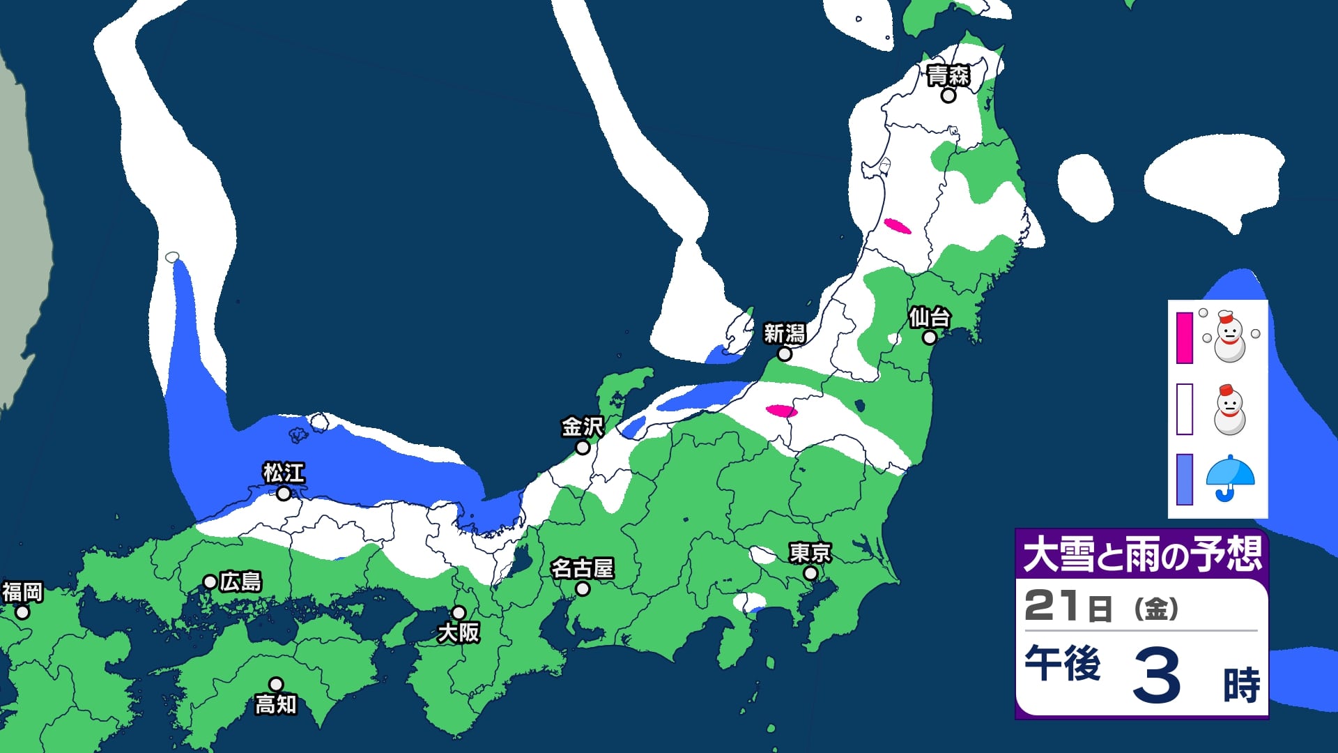 【大雪情報】居座り寒波 東北北部は21日にかけて警報級の大雪の可能性 21日夕方まで60㎝の降雪予想(24時間多い所で)2度目のピークは3連休直撃か【雪と雨のシミュレーション】 チューリップテレビ 2025年2月20日(木) 16:20 国内 天気 21日(金)雪と雨のシミュレーション