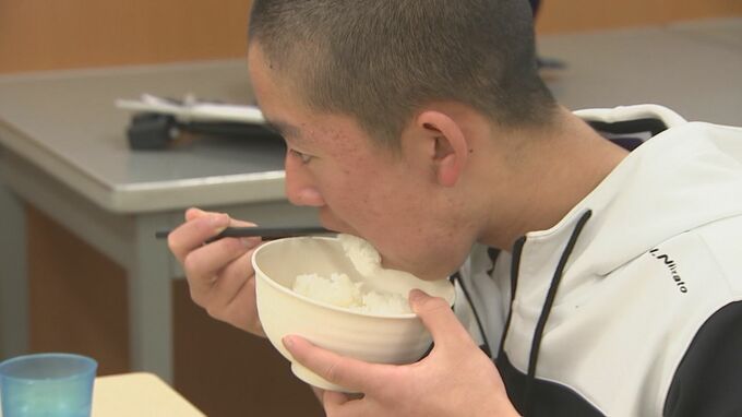 たくさん動いた選手たちをねぎらう栄養バランスの良いスタミナメニュー、新里選手もいい食べっぷりです。