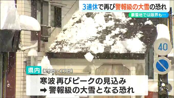今季最長・最強寒波のピークは一旦超えましたが、新潟県内は22日から始まる3連休に再び警報級の大雪になるところもありそうです。豪雪地の住民も限界を迎え、この時期欠かせないあるものにも影響が出ています。