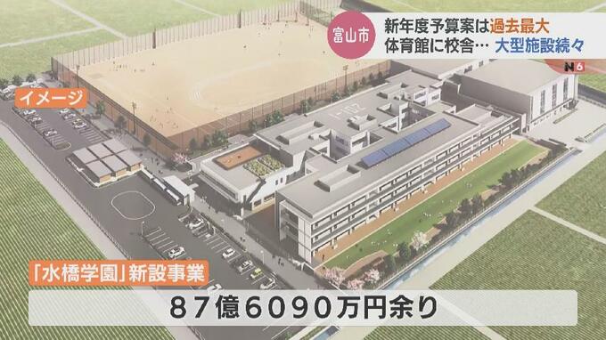富山市初となる義務教育学校「水橋学園」の新設事業費には、87億円あまりが計上されました。