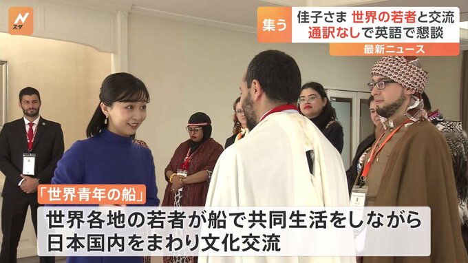 秋篠宮家の次女・佳子さまが、世界各地の若者が船に集う事業の参加者と交流されました。佳子さまは午前11時ごろ、赤坂東邸で内閣府の青年国際交流事業「世界青年の船」に参加している、ブラジルやオーストラリアな…